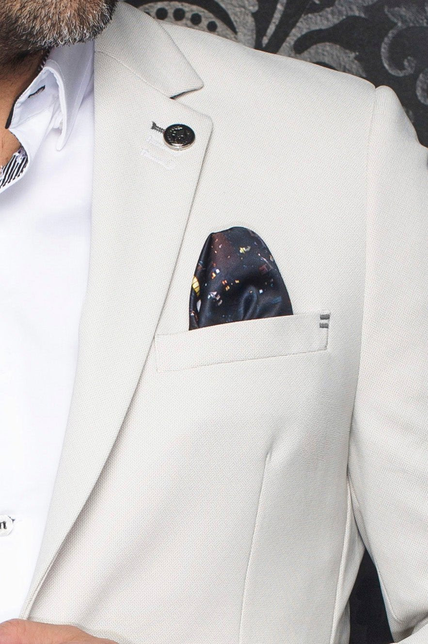 - Built-in pocket square for instant style