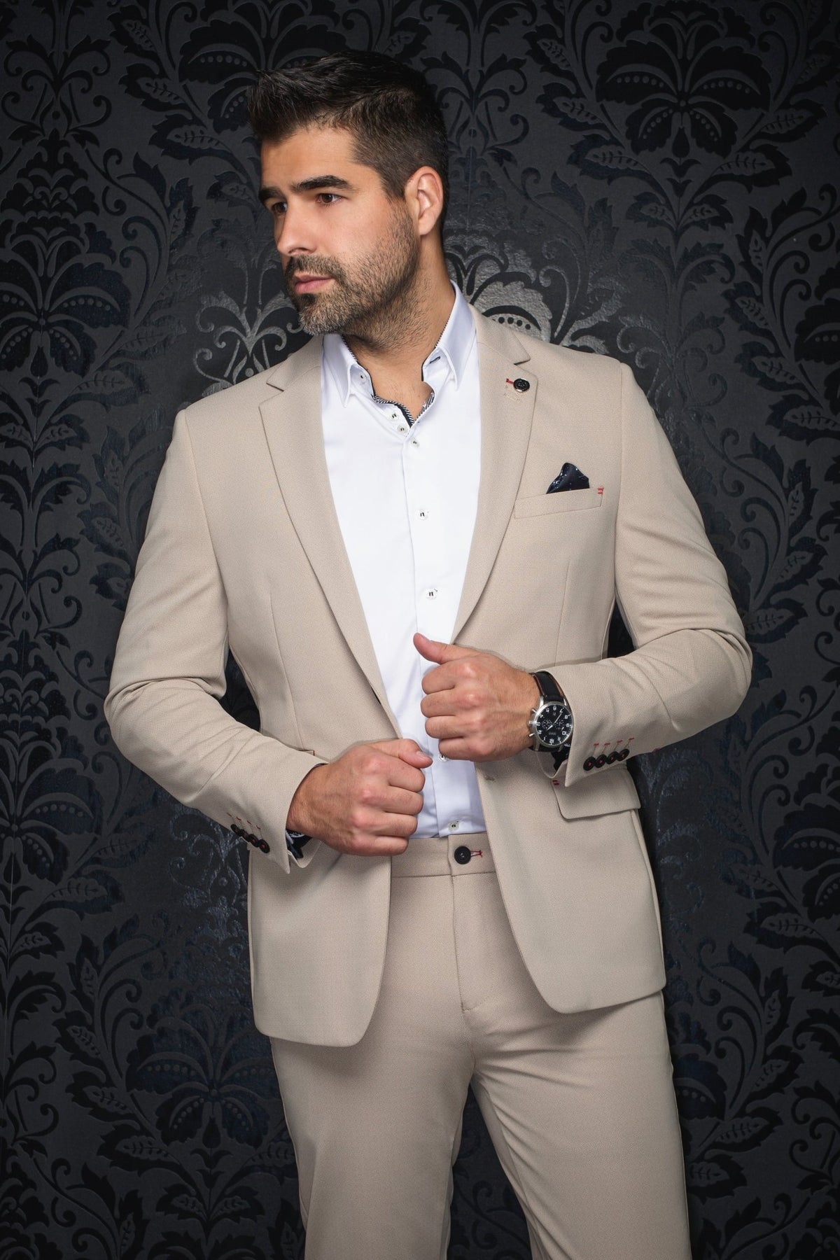 • Premium fabric for structure, comfort and impeccable fit