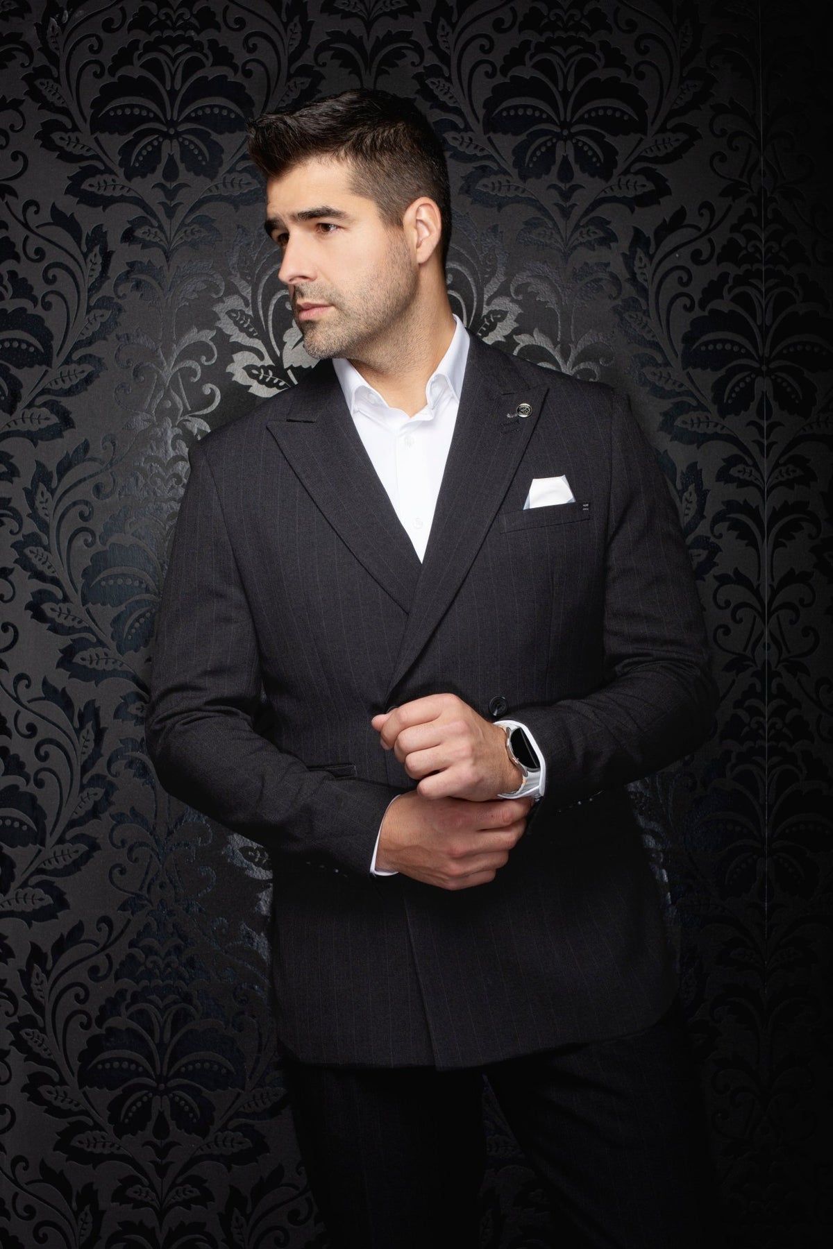 La chaqueta Bomer deAu Noir revisita el estilo clásico de doble botonadura con un toque moderno y una confección meticulosa. Elegante, estructurada y distinguida, ofrece una presencia natural que destaca tanto en prendas formales como en ocasiones especiales.