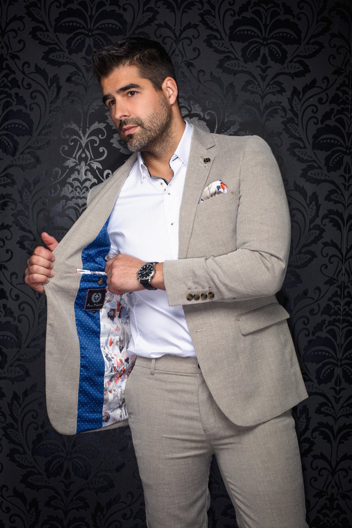 Les veston tailleur d’Au Noir incarne l’élégance moderne grâce à une construction soignée et un tissu haut de gamme qui combine confort, structureet prestance. Conçu pour offrir une silhouette nette et raffinée, il se porte aussi bienseul qu’avec un pantalon assorti pour composer un complet impeccable.