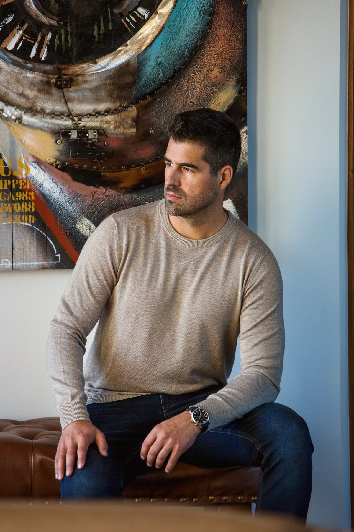 Le chandail MARINI offre un col rond élégant et confectionné avec un mélange de laine mérinos extra fine. Il présente un col rond, des poignets et une taille en maille côtelée pour un ajustement confortable. Le pull est fabriqué à partir d'un fil à torsion élevée, ce qui non seulement renforce sa durabilité, mais permet également une respirabilité et le rend hygroscopique, capable de gérer efficacement l'humidité. De plus, il bénéficie de propriétés hydrofuges et peut être facilement lavé en machine, restant sans rides même après de nombreux lavages. Ce chandail de qualité supérieure est renforcée par la facilité de lavage en machine. Le modèle, mesurant 6'1", porte une taille M à titre de référence.