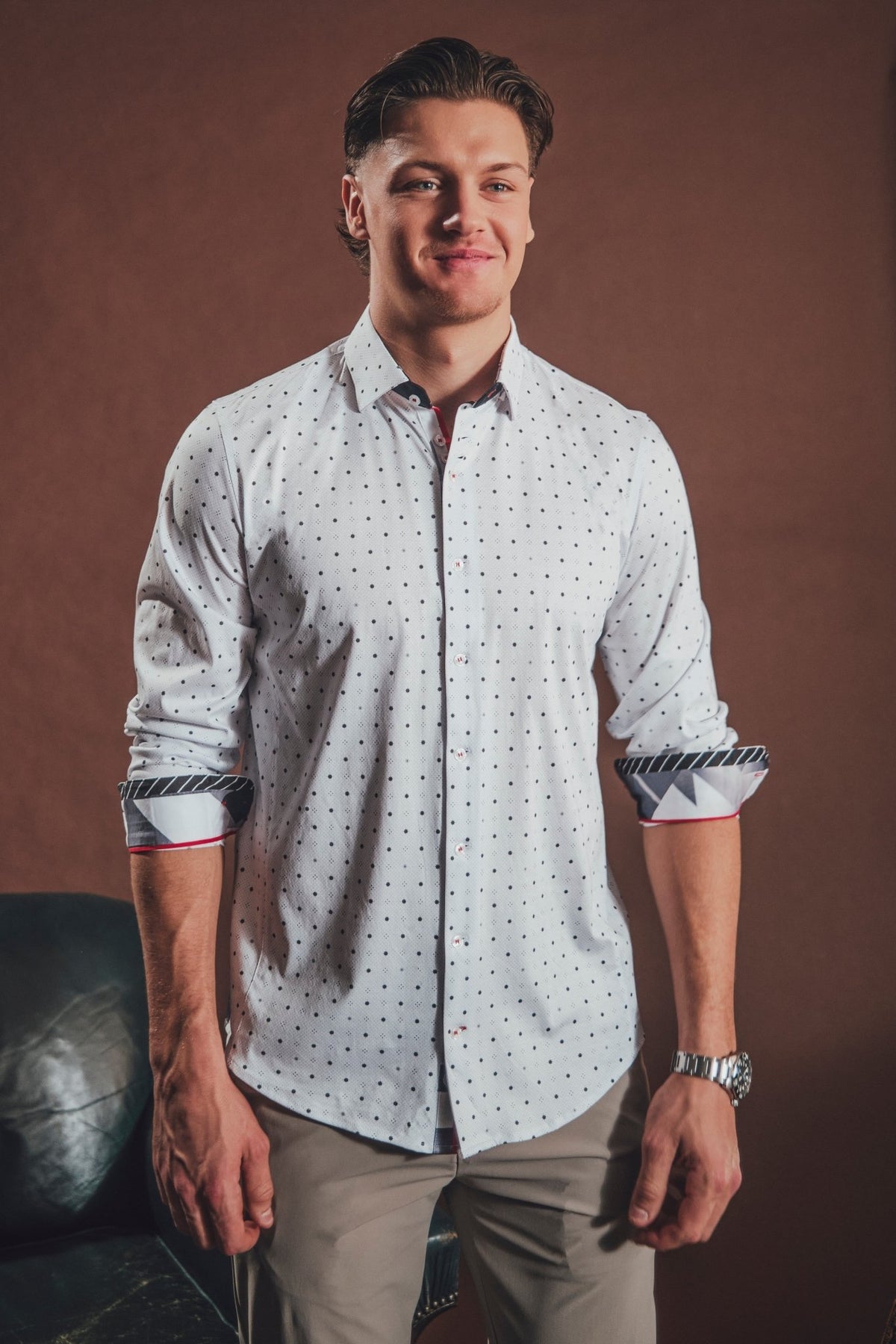 Cette chemise fashion, habillée et décontractée, est conçue pour vous démarquer grâce à ses motifs contrastants et à ses détails sophistiqués. Elle allie style moderne et confort exceptionnel grâce à son tissu extensible haut de gamme.